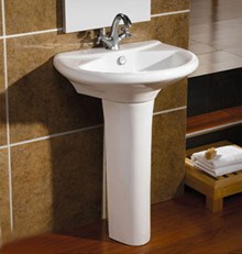 Pedestal basin is also called pedestal lavatory, which features a basin or a bowl which is positioned at a comfortable standing height and rests on a pedestal base where conceals the drain and supply lines. Pedestal basins require specific placement of supply lines and drainage lines, they should be chosen prior to construction, and this is one of the differences from bathroom vanities. Pedestal wash basins are available in different styles ranging from contemporary to Victorian. They usually create a focal point in a large bathroom. And their slim profile also could enlarge the space in a small bathroom visually.